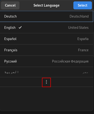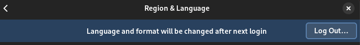 Find your newly added language and click it, then Select. It will now show a banner at the top of the settings window saying that you need to log out to apply language settings. Click the Log Out button to do so.